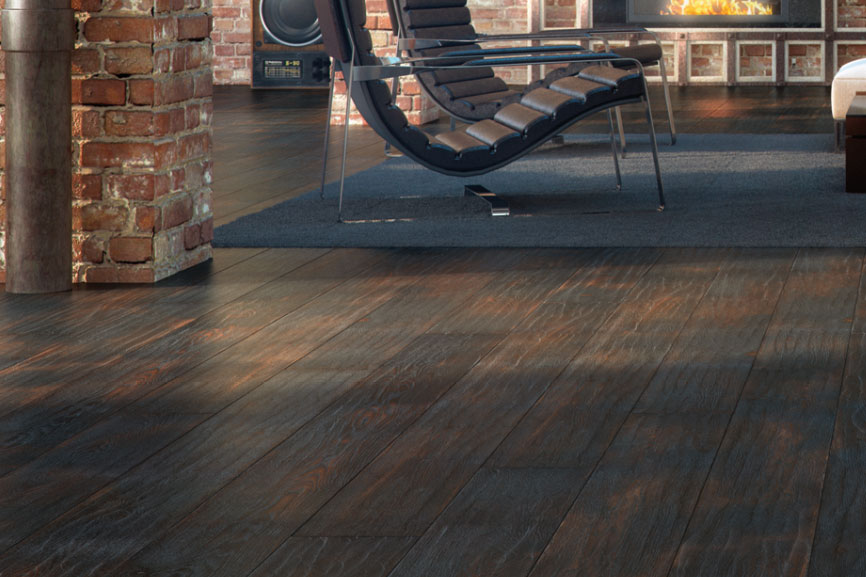 You ask what that artist's unease is, that I feel. It is a constant search. The tension-filled expectation of great inspiration which will result in a "work of life" being created. But when it comes I'll be ready. Like a seasoned magician I'll don a black cloak and leave the world immobile in magic enchantment. The floor owes its intriguing appearance to superficial manual burning of the surface, which results in the interesting colour scheme ranging from black to golden shades of brown. The distinctiveness of the boards is emphasised by hand planing and bevelling. Traces of use are imitated by deliberate scratches, dents and minor holes, characteristic of Tudor-era boards. Floor additionally protected by natural oil.